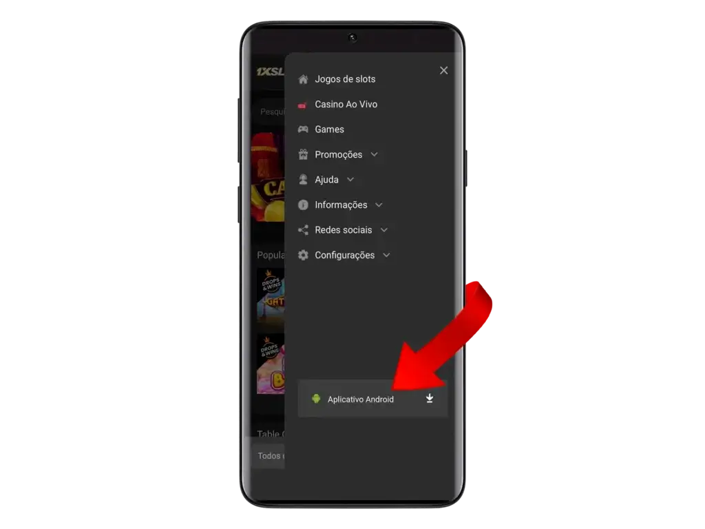 - Entra al sitio oficial de 1xSlots desde el navegador de tu Android y abre la sección de aplicación.